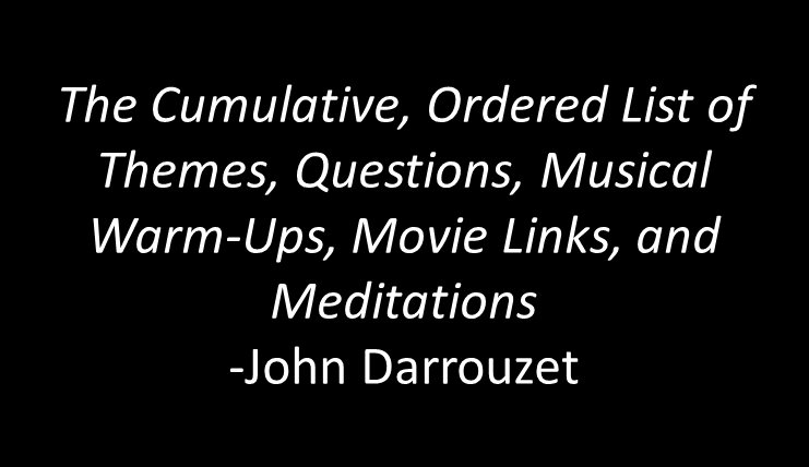 HOW TO FIND FAITH AT THE MOVIES: Using The Decision-Maker’s Path ™ John Darrouzet February 15, AD2013 12 Comments The Cumulative, Ordered List of Themes, Questions, Musical Warm-Ups, Movie Links, and Meditations No. Theme Question Musical Movie Meditation Warm-Up Read More »