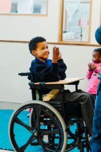 Hayden has also reached new milestones in occupational therapy. He can sit without support, feed himself with a built-up spoon, dress with assistance, and use both hands to reach, grasp, and explore. His visual perception has improved, and he recently began attending the St Joseph’s school, a meaningful step toward greater independence.