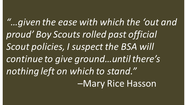 Uniformed Boy Scouts marched front and center this past weekend, leading the Utah \”gay pride parade\” in Salt Lake City. No matter that officials from the