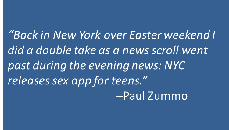 Back in New York over Easter weekend I did a double take as a news scroll went past during the evening news: NYC releases sex