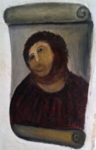 Is this an amazing story or not? And it is all true. You can check out Cecilia Gimenez on the internet (Ecce Homo (García Martínez and Giménez)). She passed recently but her spirit lives on in the painting she touched up (inexpertly), and the hope she evokes in people like me that God writes straight on crooked lines.