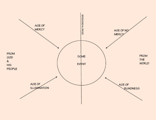 A wise friend of mind frequently says, “When good and evil collide, there is suffering.” This comes to mind when I picture these four rays or ages of Mercy, Illumination, No Mercy and Blindness coming together at the point of “some event.”