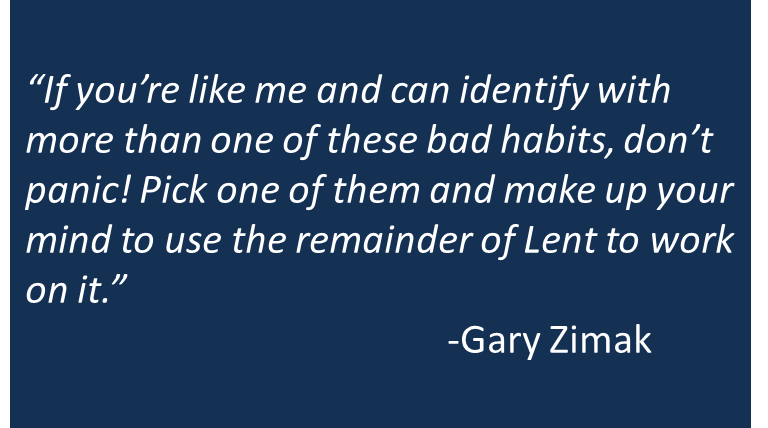 Although Lent is winding to a close, there is still plenty of time to work on the many bad habits that hurt our relationship with