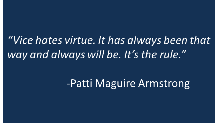 Rock crushes scissors, paper covers rock, scissors cuts paper, and vice hates virtue. Such are the rules of the game. And they are not going