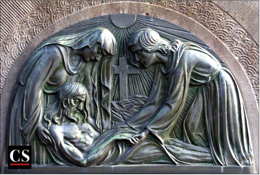 Jesus is Placed in the Sepulcher Even though his body is dead, his history is alive, taunting and perhaps prophetically speaking, haunting. As I stand