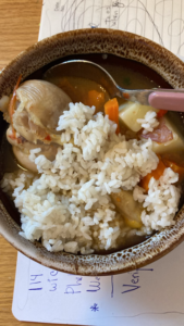 Soup or stew made from CHFP ingredients selected as part of a monthly food distribution.