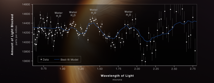 However, because of its size, WASP-96b, a gas giant planet located about 1150 light years away, is not a likely candidate for the presence of life. Note the multiple observations required to improve the signal/noise ratio.